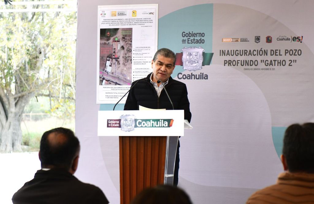 Francisco I. Madero, Coahuila.- El gobernador Miguel Ángel Riquelme Solís inauguró el Pozo Profundo Gatho 2 en el Municipio de Francisco I. Madero, cuya inversión fue de 14.9 millones de pesos y que beneficiará a 17 mil 280 habitantes.