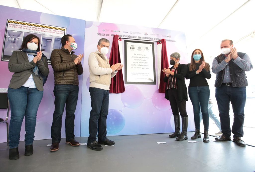 Con una inversión conjunta entre el Gobierno del Estado y la Comisión Nacional de Búsqueda de 45.4 millones de pesos, el gobernador Miguel Ángel Riquelme Solís, acompañado por Karla Quintana Osuna, Comisionada Nacional de Búsqueda, inauguraron el Laboratorio de Genética del Centro Regional de Identificación Humana (CRIH) de la Comisión de Búsqueda del Estado.