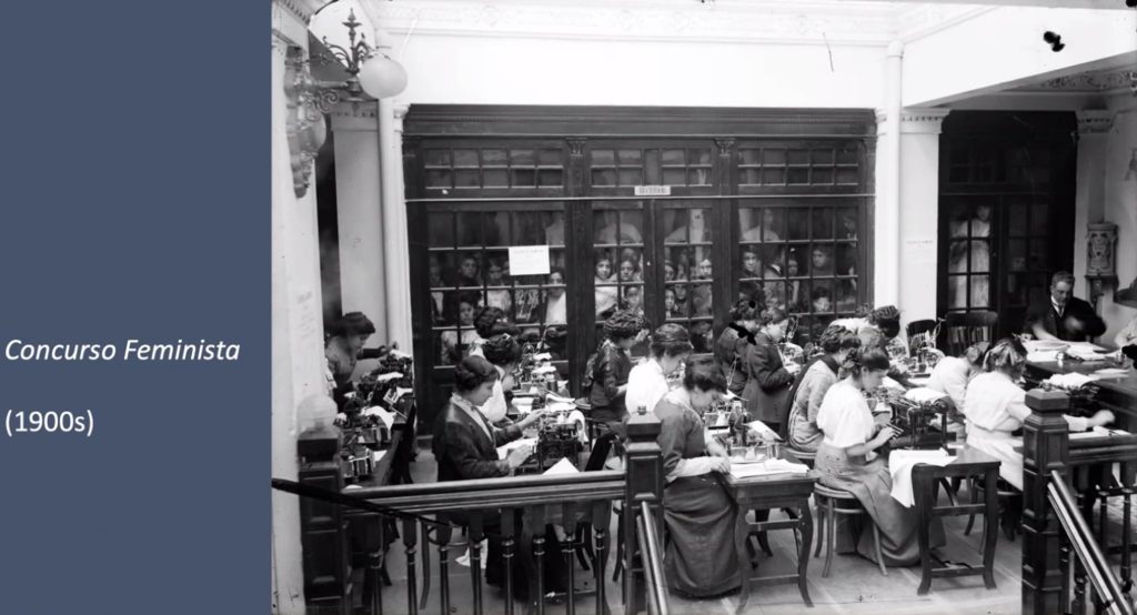 Hace un siglo que las mujeres en México trabajan en oficinas. En 1920 había un entorno laboral dominado por los hombres, y una profesión relativamente nueva para ellas, en ese contexto inequitativo se sentaron las bases para las condiciones de su empleo, expuso Susie S. Porter de la Universidad de Utah, acompañada por la directora y la investigadora del IIH, Elisa Speckman Guerra y Claudia Amalia Agostoni Urencio, respectivamente.