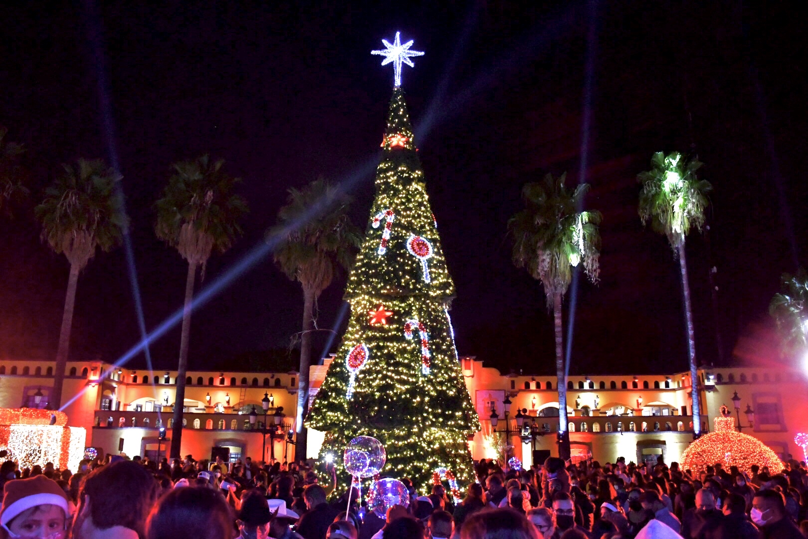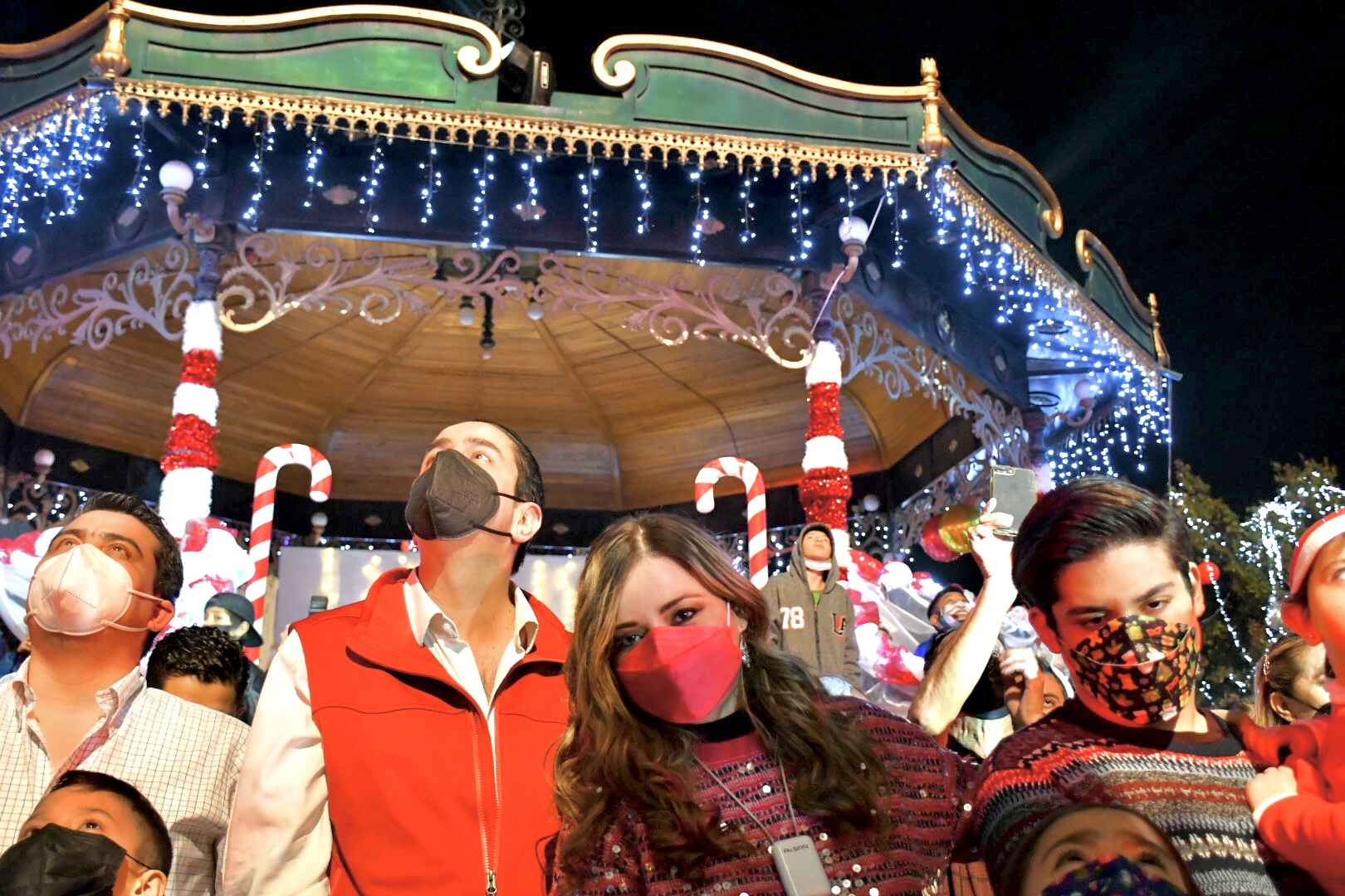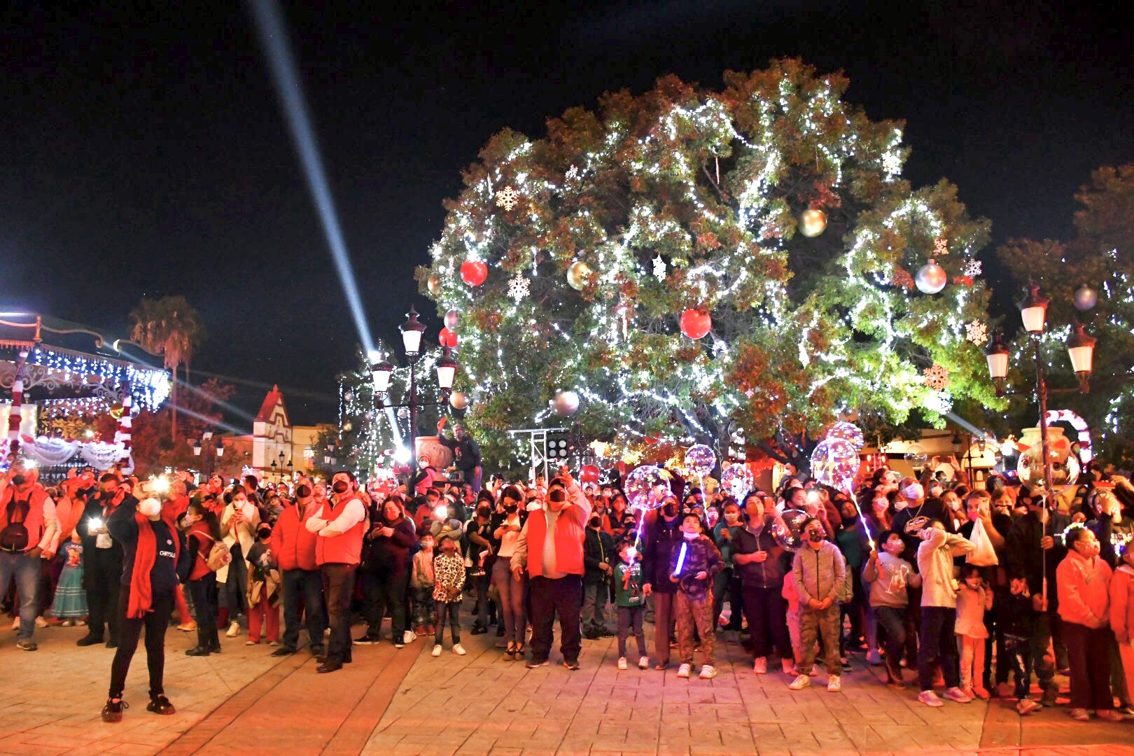 En medio de una colorida ceremonia, el alcalde de Ramos Arizpe, Chema Morales Padilla, en compañía de la presidenta honoraria del DIF municipal, Ana Lucía Cavazos de Morales, encabezo el tradicional encendido del árbol de Navidad en la plaza principal frente a la Presidencia Municipal.