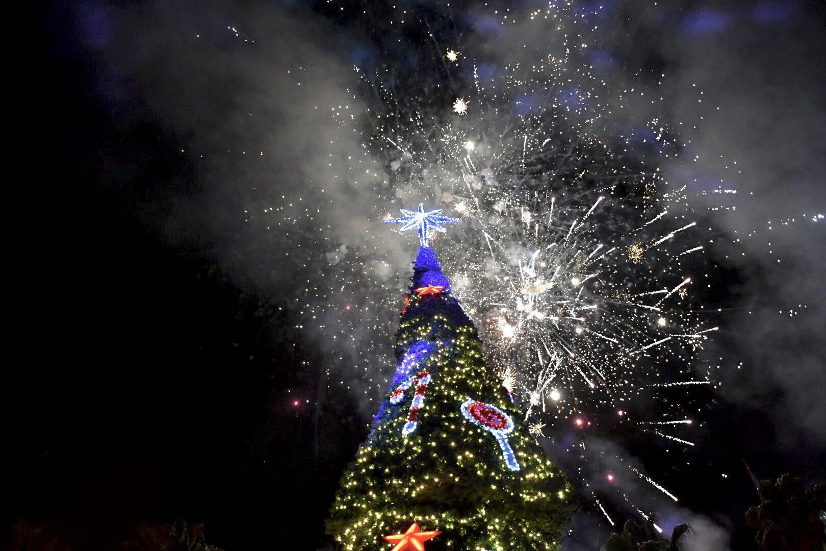 Durante la ceremonia, los asistentes pudieron disfrutar de fuegos pirotécnicos al instante de haberse encendido el pino navideño así como la decoración en el espacio público.
