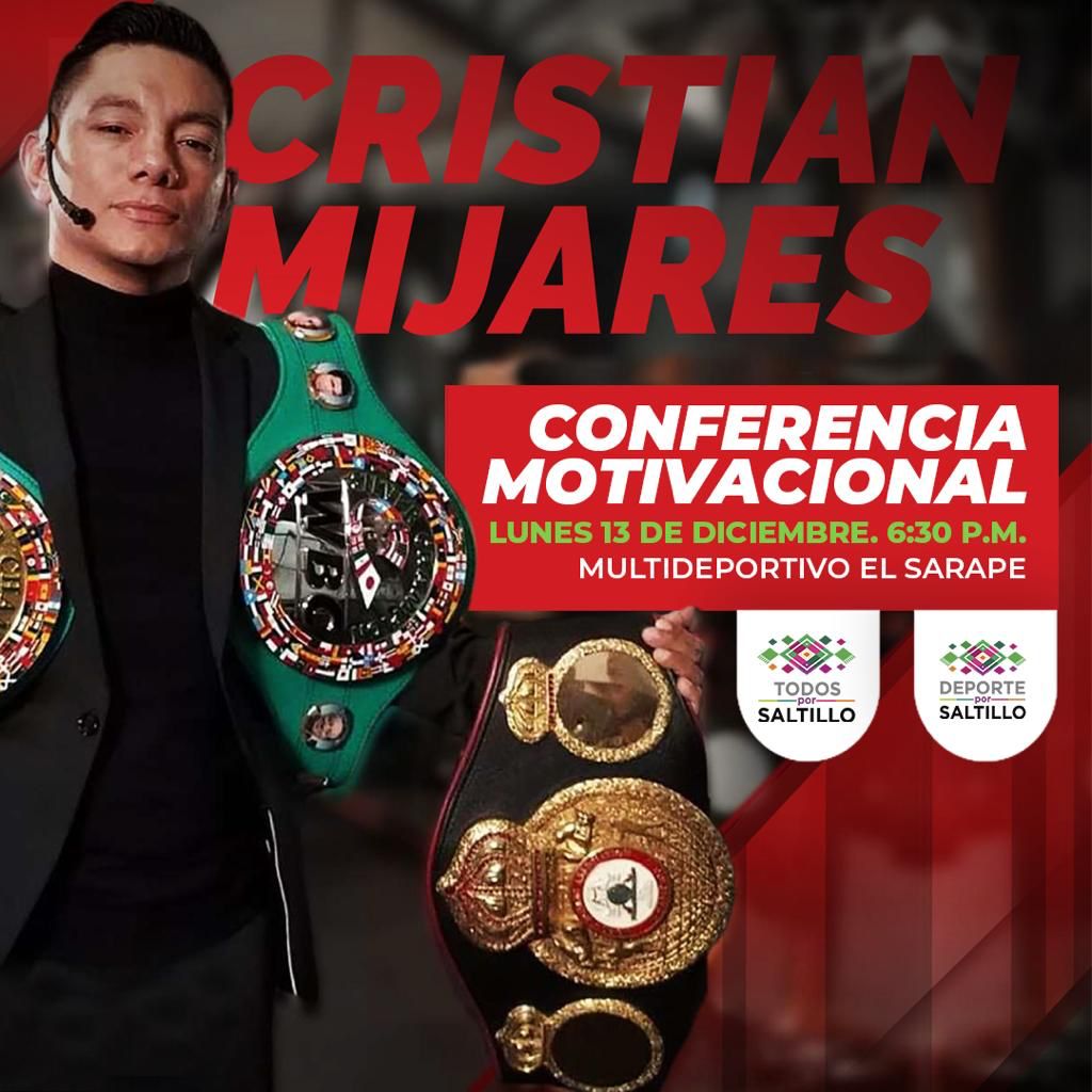 Para motivar a niños y jóvenes a llevar una vida saludable por medio del deporte, el boxeador mexicano Cristian Ricardo Lucio Mijares, campeón de peso supermosca por el Consejo Mundial de Boxeo (CMB), llegará a Saltillo para ofrecer una conferencia gratuita el próximo 13 de diciembre, a las 6:30 de la tarde, en el Multideportivo El Sarape.