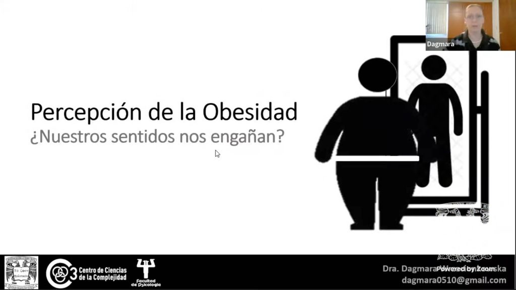 En la sesión a distancia, Dagmara Wrzecionkowska expuso que nadie despierta con obesidad de un día para otro, es un proceso que nos lleva a acumular grasa día tras día, y muchas veces eso ocurre por debajo de nuestro umbral sensorial, esto es, no somos capaces de percibir la acumulación de peso con el tiempo ni de nuestra imagen corporal.