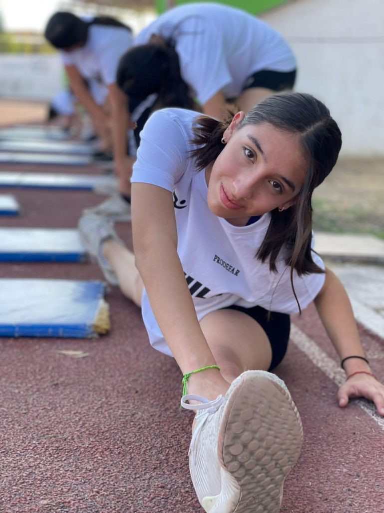 En el Atletismo, después de haber tomado su talla y peso, los alumnos realizaron pruebas de flexibilidad, velocidad 30 metros con salida baja, velocidad 30 metros lanzados con salida alta; prueba 60 metros planos con salida baja y alta; salto de longitud sin impulso, lanzamiento de balón de 1 kilo al frente; abdomen en 30 segundos, lagartijas por 30 segundos y 400 metros planos.