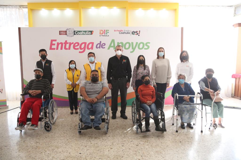 La entrega de estos apoyos se llevó a cabo en el Club de Leones de este municipio, en donde estuvieron presentes, además, Pamela Garanzuay de Paredes, presidenta del DIF Municipal; Juan Pablo Mendoza Sosa, presidente de este organismo de la sociedad civil; el Director de Familia Saludable y Apoyos Complementarios, Josué Gabino Jiménez Flores, y la Coordinadora de DIF Coahuila en la Región Centro-Desierto, Sara Irma Pérez Cantú.