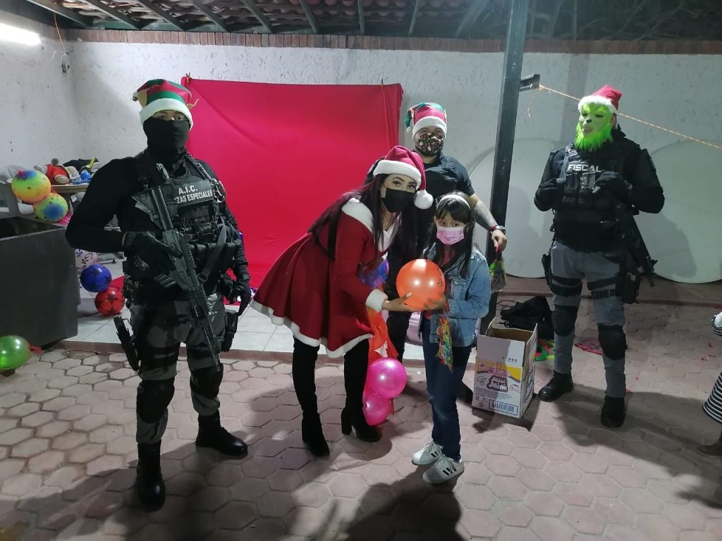 Las niñas y niños de la Fundación “No me Rindo AC” compartieron con los elementos, con quienes también partieron una piñata y pastel e intercambiaron deseos de armonía en sus hogares. (EL HERALDO)