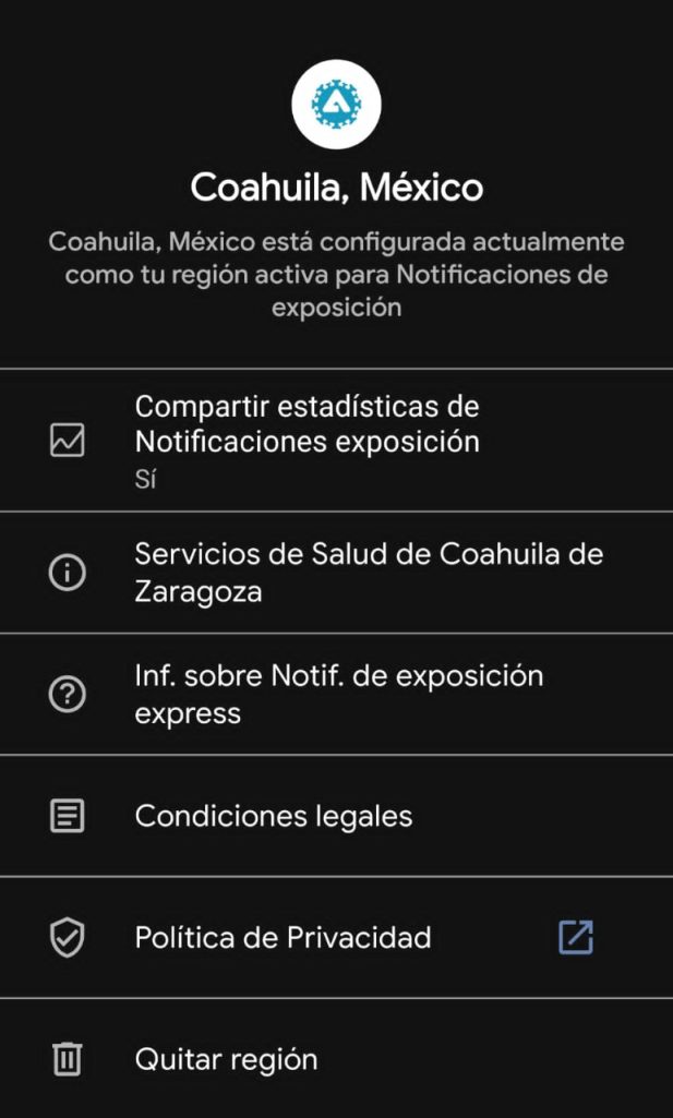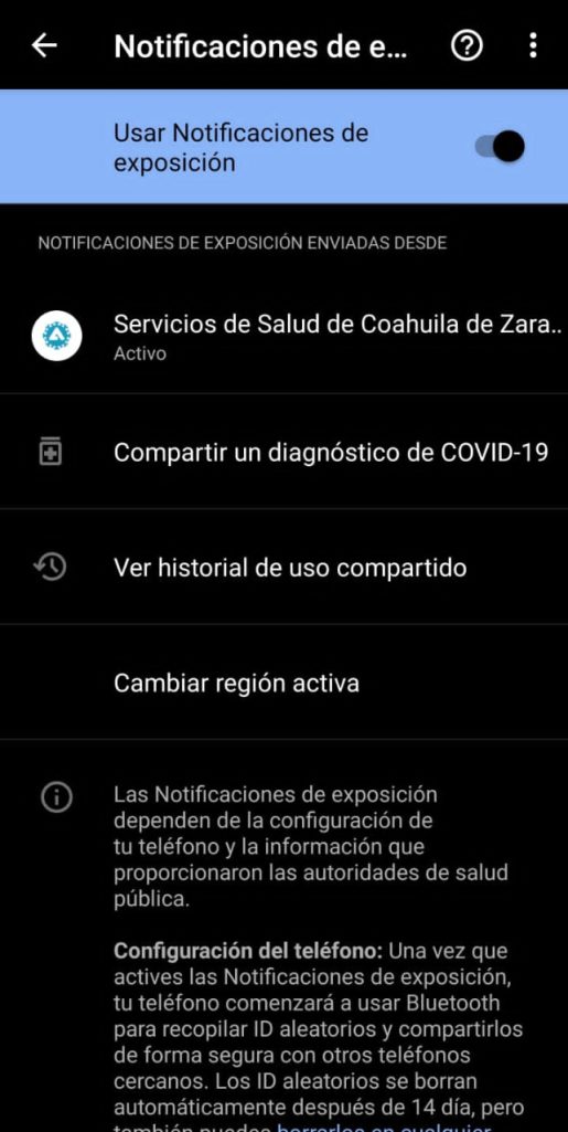 Roberto Bernal Gómez, Secretario de Salud en Coahuila, informó que por indicaciones del gobernador Miguel Ángel Riquelme Solís, desde el pasado 11 de noviembre el Estado cuenta con esta herramienta tecnológica desarrollada por las empresas Google y Apple, y que se encuentran diseñadas para ser utilizadas con seguridad por la ciudadanía.