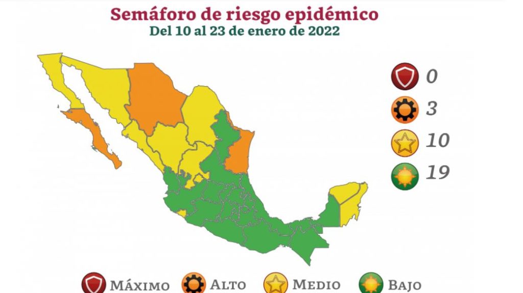 La Secretaría de Salud informó que ningún estado de la República Mexicana permanecerá en Semáforo de Riesgo Epidémico Rojo por la pandemia de COVID-19 y que 19 entidades, entre ellas la Ciudad de México, estarán en semáforo verde.