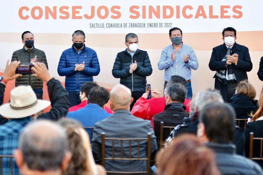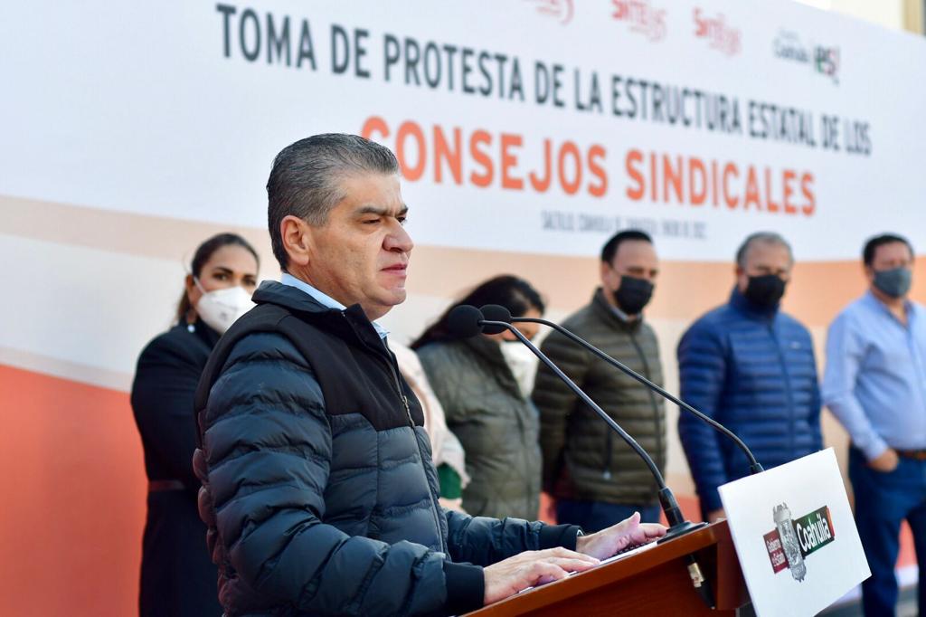 Miguel Riquelme reiteró que lleva una buena relación con los sindicatos magisteriales, pero que también con toda la fuerza laboral de Coahuila, quienes son solidarios para que la entidad siga siendo líder en Inversión Extranjera Directa y en Formalidad Laboral, por ejemplo, y sobre todo para mantener la estabilidad, la paz y tranquilidad.