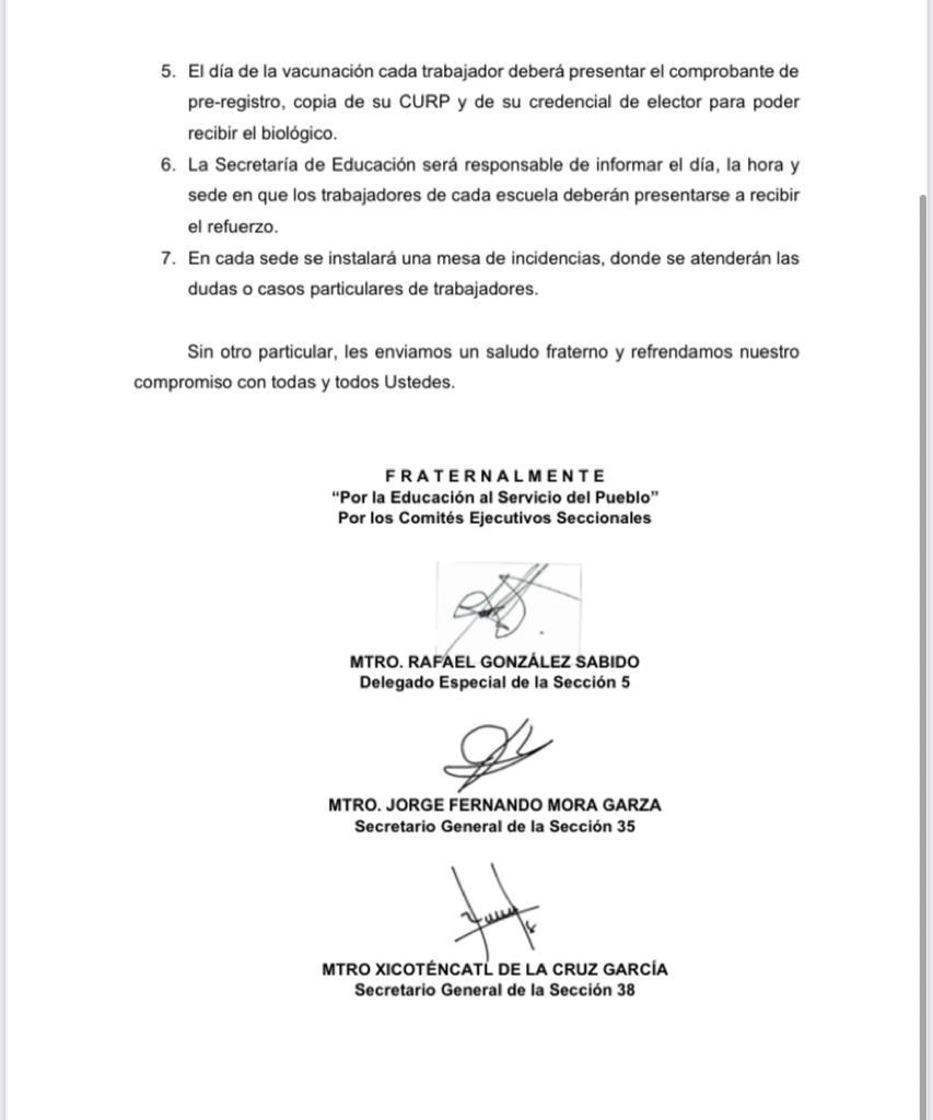 Así lo dieron q conocer los líderes de las secciones sindicales 5, 35 y 38, Rafael González Sabido, Jorge Fernando Mora Garza y Xicoténcatl de la Cruz García, respectivamente, a través de un comunicado.