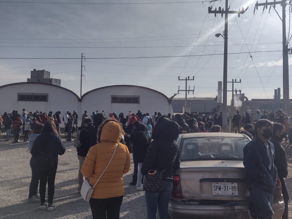 En el último día de la segunda aplicación de la vacuna contra la Covid-19 en adolescentes de 15 a 17 años se registra una kilométrica fila de personas dentro de este rango de edad a las afueras de Canacintra Saltillo.