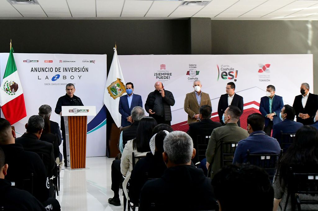 Torreón, Coahuila.- Coahuila avanza en la atracción de inversiones, creciendo en empleos, y muestra de ello es la inversión de 8 millones de dólares que anunció el gobernador Miguel Ángel Riquelme Solís de la empresa LA Z Boy, en la Región Laguna, que generará 520 empleos directos.