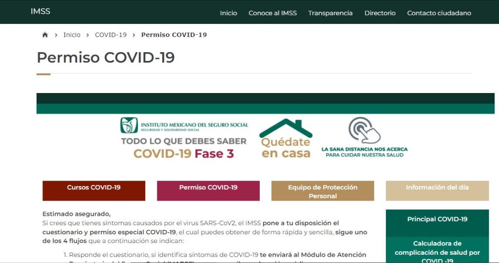 Explicó que el trámite se realiza una vez que el interesado ingresa a la página http://www.imss.gob.mx/covid-19/permiso, o a la aplicación IMSS Digital y da clic en Ingresar Permiso COVID-19.