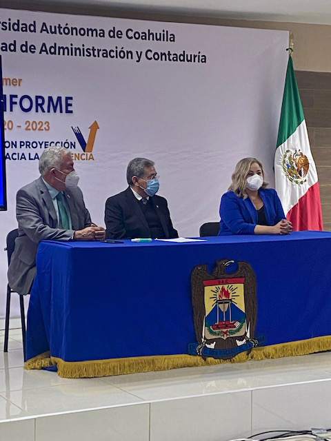 Por lo anterior, agradeció el esfuerzo realizado por la comunidad de la Facultad de Administración y Contaduría y destacó que con el liderazgo de su directora Verónica Villarreal Sánchez, se ha tenido la capacidad para sostener un productivo ritmo de trabajo en todos los ámbitos que constituyen la gestión tanto académica como administrativa del plantel.