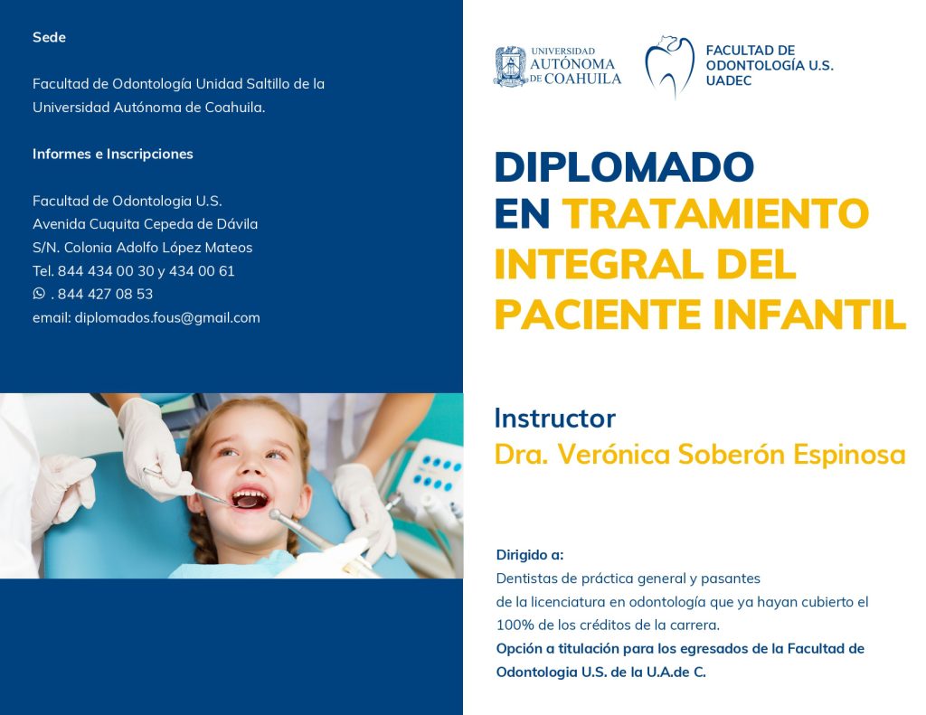 Para capacitar y actualizar a los cirujanos dentistas de práctica general y especialistas en áreas afines para la atención bucodental en bebés, niños y adolescentes, la Facultad de Odontología Unidad Saltillo de la Universidad Autónoma de Coahuila ofrece el Diplomado en Tratamiento Integral del Paciente Infantil, a partir del 25 de febrero.