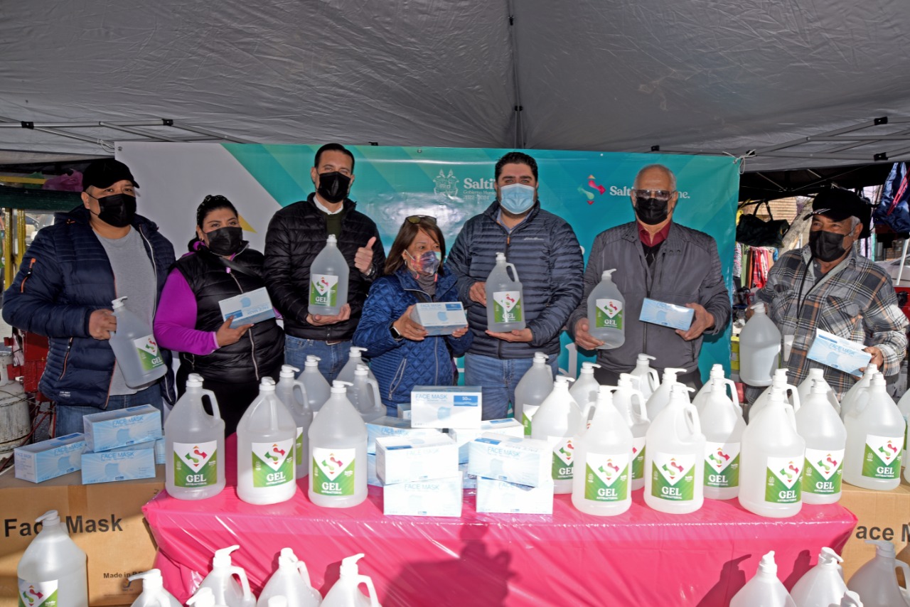 El Gobierno Municipal de Saltillo inició la entrega de gel antibacterial y cubrebocas en mercados sobre ruedas, a fin de reforzar el mensaje de que la lucha contra el Covid-19 no ha terminado.