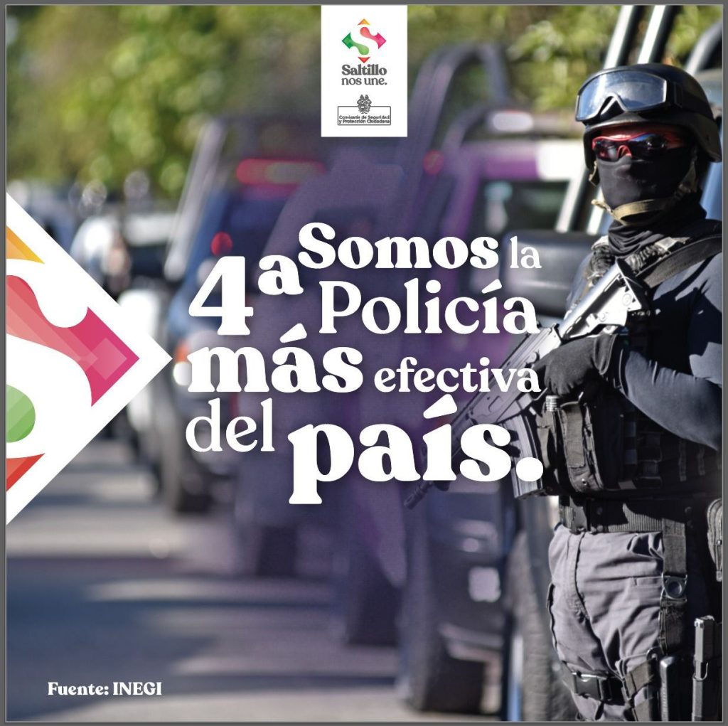 La Policía de Saltillo se ubicó como la cuarta más efectiva de todas las policías municipales de México, de acuerdo con la Encuesta Nacional de Seguridad Pública, ENSU, que publicó el INEGI este miércoles 19 de enero.