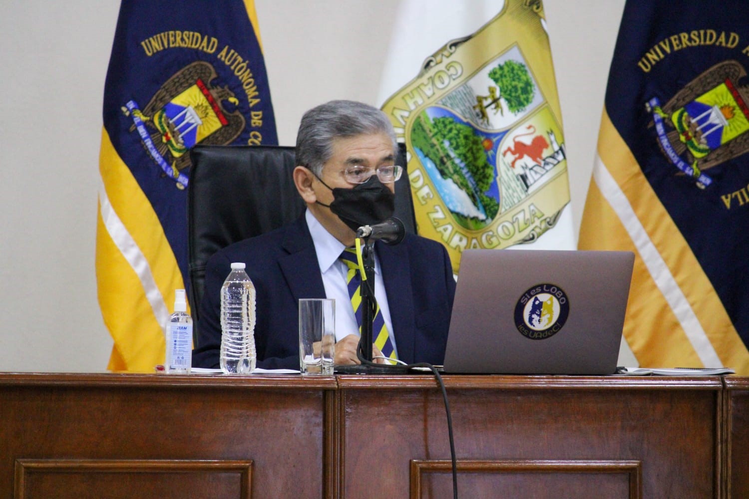 Torreón, Coah.- Contando con el Quorum legal de 264 consejeros universitarios, en Sesión Extraordinaria del Honorable Consejo Universitario de la Universidad Autónoma de Coahuila, fue aprobado el Plan de Desarrollo Institucional para el periodo 2021-2024 y se creó la Comisión Especial para la Revisión de Cuotas de Inscripción para el ciclo escolar 2022-2023.
