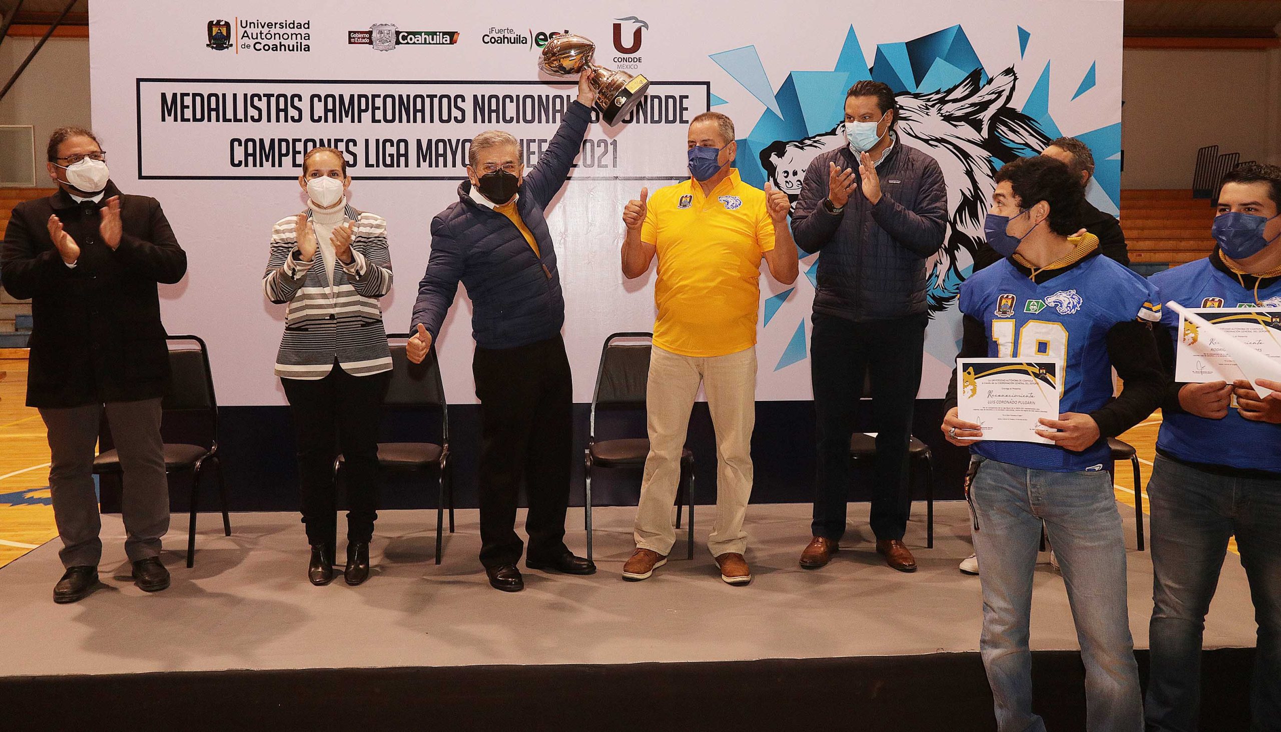 El equipo de Rubgy Varonil de la UAdeC conformado por Eutiquio Canales Pradis, Mario Alejandro Carranza Rodríguez, José Enrique Cerda Iracheta, Alonso Escalera Durán, José Juan Guerrero Saucedo, Luis David Jurado Padilla, Johan Emiliano Ledezma Gutiérrez, Ignacio Luna Retiz, Carlos Ricardo Martínez Dávila, Mario Alejandro Morin García, Alexis de Jesús Narro Villarreal, Abel Puente Gómez y los entrenadores, Pablo Emilio Jaramillo Canales y José de Jesús Segovia Cortés.