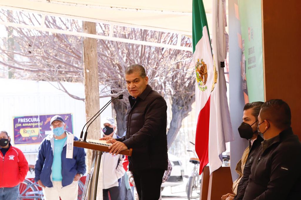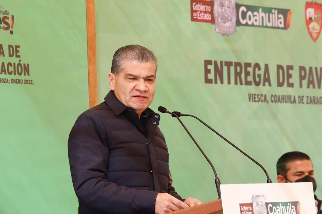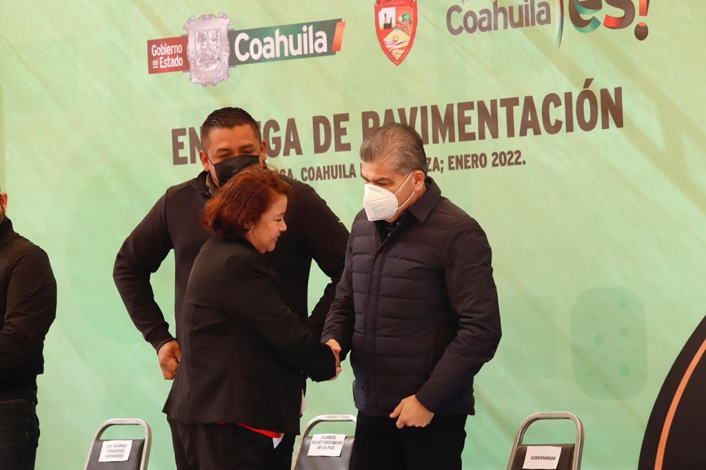 Viesca, Coahuila.- El gobernador Miguel Ángel Riquelme Solís entregó obras de pavimentación en el Pueblo Mágico de Viesca y dio la instrucción a la Secretaría de Infraestructura, Desarrollo Urbano y Movilidad (SIDUM) para “que Viesca quede completito” en este rubro, en 12 calles más.