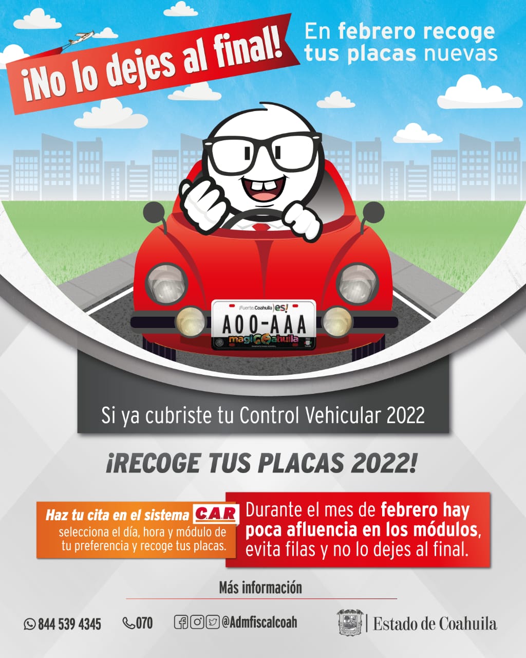La Administración Fiscal General del Estado (AFG) te invita a que no esperes más para recoger tus placas 2022 y aproveches la poca afluencia en las oficinas de Recaudación del Estado durante el mes de febrero.