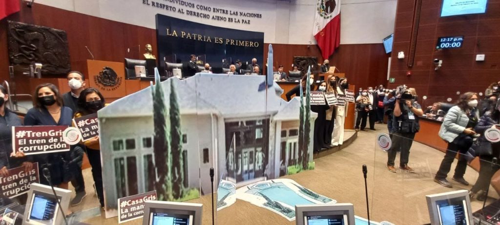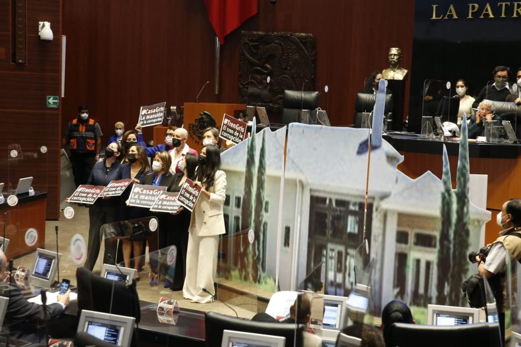 Luego de que durante varias sesiones se han negado a discutir las propuestas y ante el voto en contra de Morena para modificar el orden del día con este fin, legisladores panistas reclamaron la falta de transparencia en el Senado y mostraron ante el pleno una imagen de la Casa Gris que ha sido exhibida como parte de las denuncias por corrupción en contra de José Ramón López Beltrán.