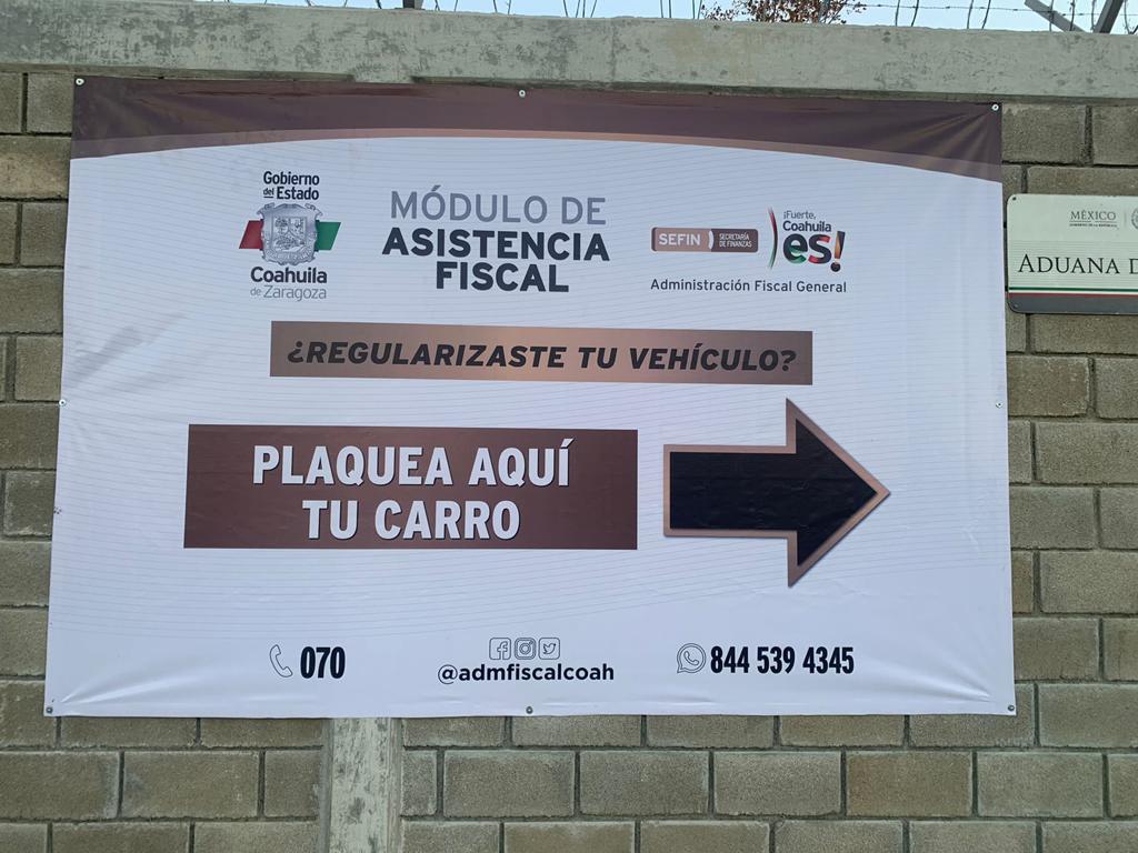 Ciudad Acuña, Coahuila.- Con motivo del programa de Regularización de Vehículos de Procedencia Extranjera en el País, y ya que se habilitó la Administración de Aduanas en el Municipio de Acuña, el Gobierno del Estado de Coahuila, a través de la Administración Fiscal General, instaló un módulo de Atención de Asistencia Fiscal.