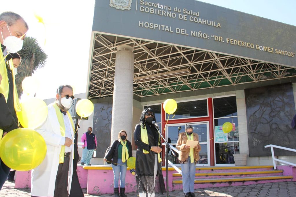 Luego de soltar al aire globos amarillos, color distintivo del Día Mundial de la Lucha Contra el Cáncer en la Infancia y la Adolescencia, encabezaron sencilla ceremonia en el vestíbulo de la Unidad de Cuidados Intensivos (UCIN).