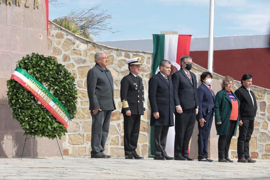 En su mensaje, durante el evento conmemorativo por el 109 Aniversario de la creación del Ejército Mexicano realizado en la ex hacienda de Guadalupe, en el municipio de Ramos Arizpe, el mandatario dijo que, en su gobierno, la participación de los soldados y marinos ha sido fundamental para proteger la seguridad, así como para garantizar el bienestar de la población en caso de desastres, y vigilar la infraestructura estratégica del país.