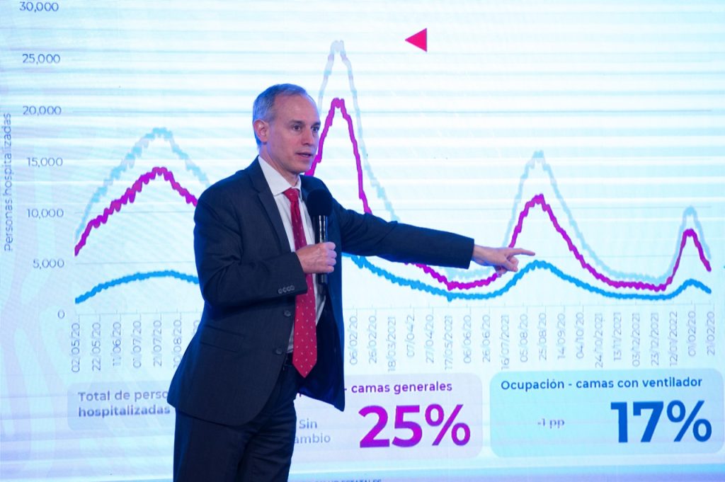 “La comparación es muy notoria entre el punto máximo de la segunda curva y el momento actual, hay 76 por ciento de diferencia. Afortunadamente llevamos ya dos semanas consecutivas de reducción de mortalidad”, explicó el funcionario.