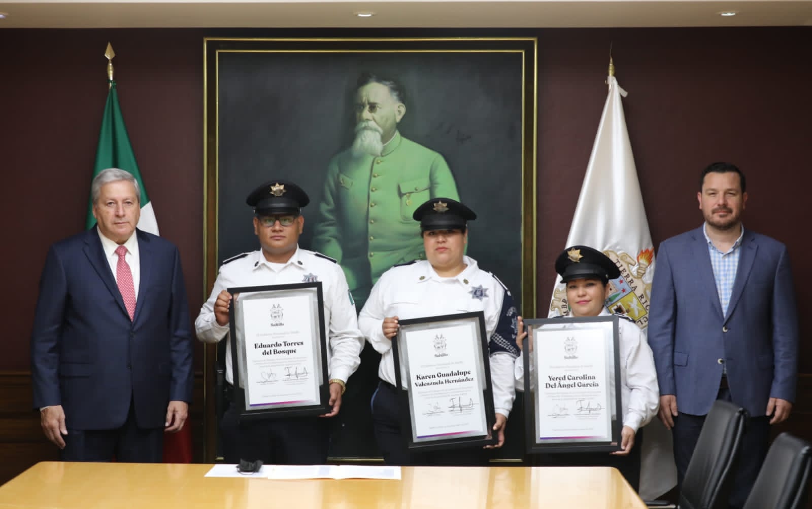 Al entregar reconocimientos a tres elementos de tránsito municipal por haber realizado acciones extraordinarias a favor de la ciudadanía, el alcalde de Saltillo, José María Fraustro Siller, exhortó a los policías para que siempre estén dispuestos a ayudar a quien lo requiera.