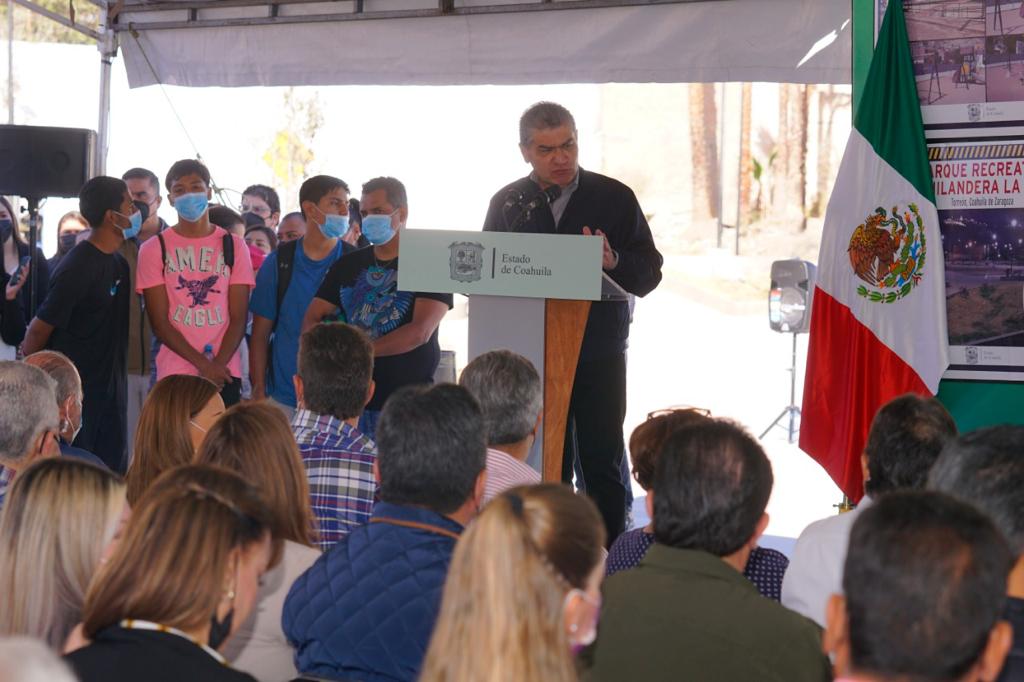 “Es un día especial para Torreón, pues este parque representa un lugar de esparcimiento, pero también el lugar y el acuerdo que existe entre el Estado y Municipio”, expresó.