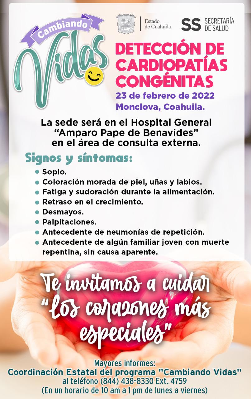 Monclova.- El secretario de Salud de Coahuila, Roberto Bernal Gómez, informó que este 10 de marzo se realizará la Jornada Estatal de Detección de Cardiopatías Congénitas a menores de 5 años, en las instalaciones del Hospital General de Monclova “Amparo Pape”.