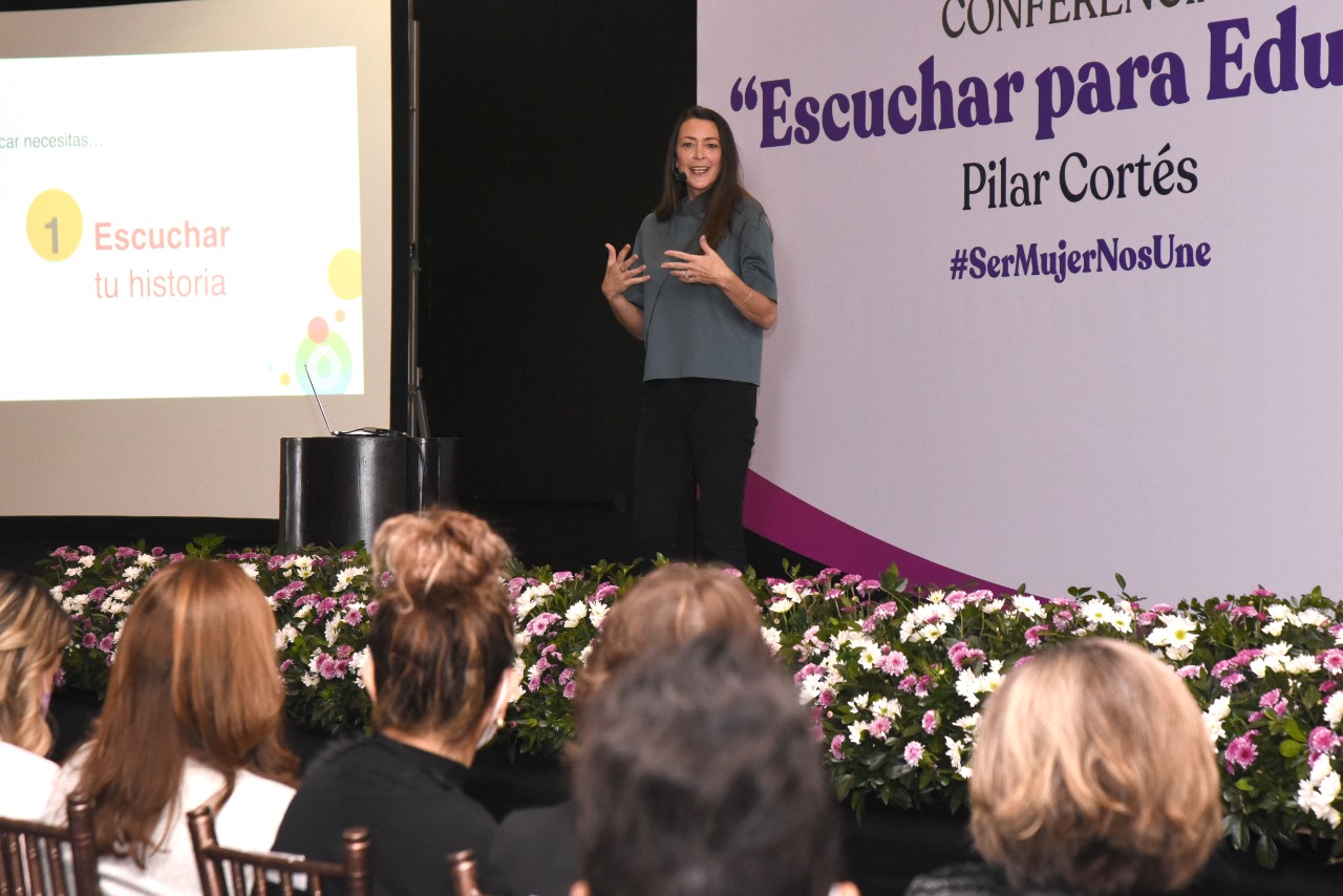Al brindar en Saltillo la conferencia Escuchar para Educar, la especialista Pilar Cortés destacó que es muy importante que las mujeres fortalezcan y abran sus canales de comunicación, además de practicar la introspección con el fin de contribuir a una mejora de ellas y su entorno.