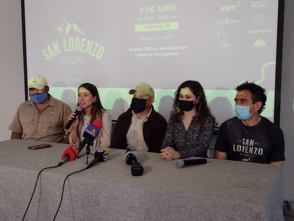 La mañana de este viernes se realizó la presentación oficial de la carrera recreativa «San Lorenzo Night Trail» que se efectuará el próximo 9 de abril de este 2022, a partir de las 8:00 de la noche, en el Cañón de San Lorenzo, con costo de $500.00 pesos por participante e inscripciones disponibles en http://slnt2022.boletopolis.com/.