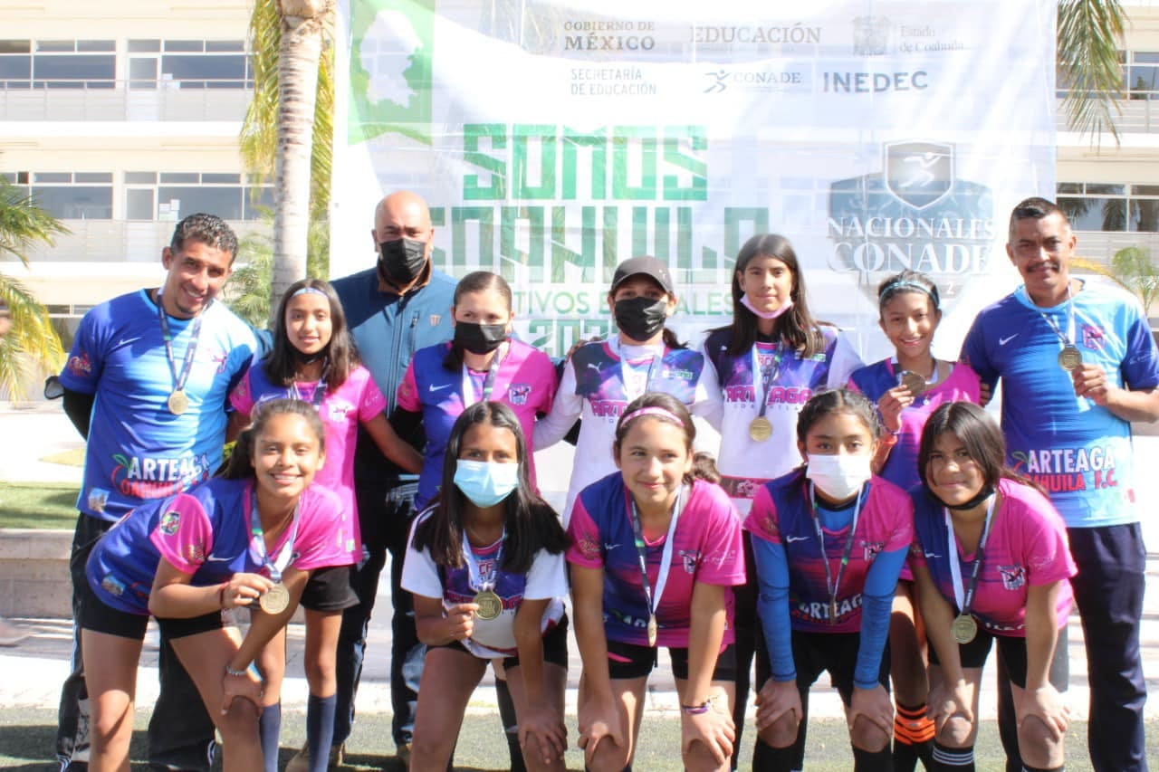 Torreón.- Luego de una larga jornada de partidos, finalizó el selectivo estatal de Futbol Femenil, en el que los equipos representativos de Torreón (Sub 15) y Arteaga (Sub 17) fueron los ganadores en sus respectivas categorías