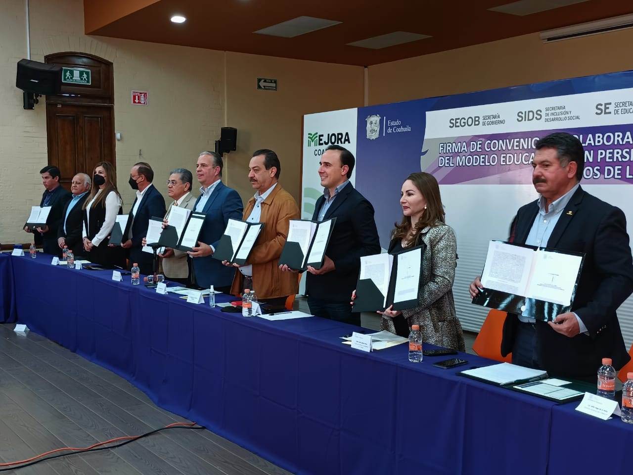 Este lunes, los secretarios de Gobierno, Desarrollo Social e Inclusión, y Educación de Coahuila, junto con el rector de la UA de C y la directora del Instituto Coahuilense de las Mujeres, encabezaron la firma del Convenio de Colaboración para la Implementación del Modelo Educativo con Perspectiva de Género y Derechos Humanos de las Mujeres.