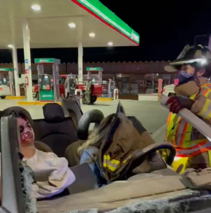 El performance de accidente de tránsito en el que participa la Dirección de Proximidad Social y Prevención, así como la Subdirección de Tránsito y los Bomberos, se llevará a cabo este jueves 17 de marzo en el cruce del periférico Luis Echeverría Álvarez con Antonio Cárdenas, a las 7:00 de la tarde.