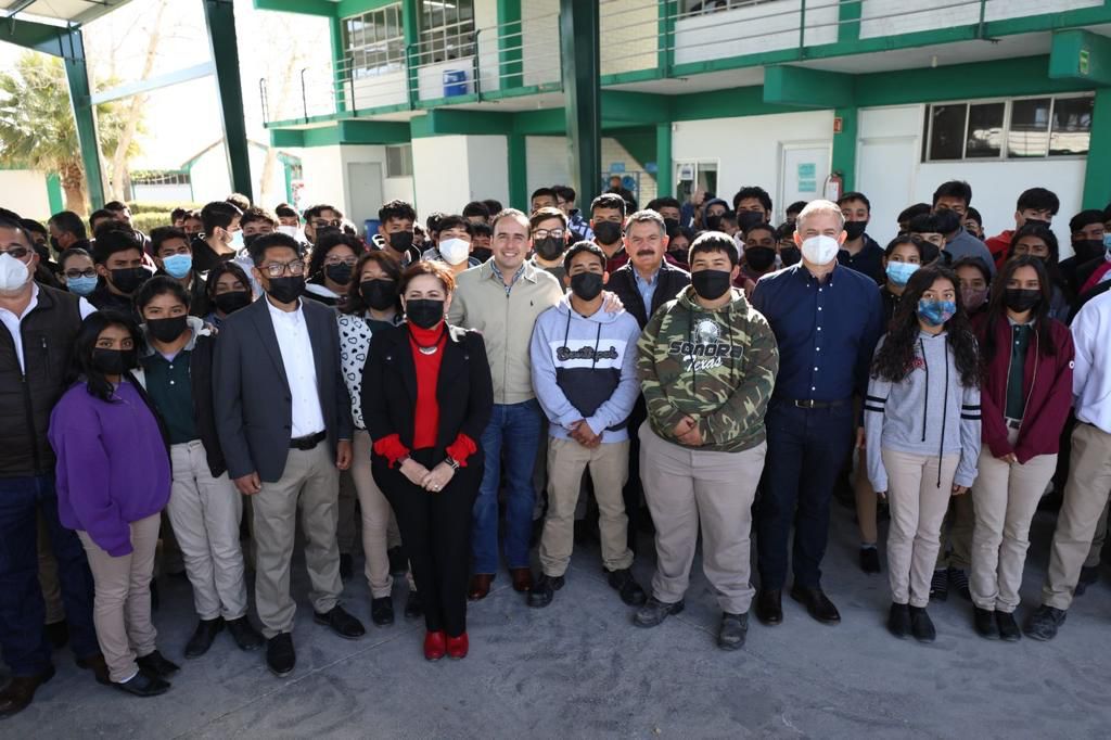 En primera instancia, el Secretario de Inclusión y Desarrollo Social, acompañado del titular de Educación en el Estado, Francisco Saracho, se reunió con estudiantes y docentes al supervisar las obras de construcción en las instalaciones del Conalep de Ciudad Acuña, en donde también estuvo el director general, Alfio Vega de la Peña.