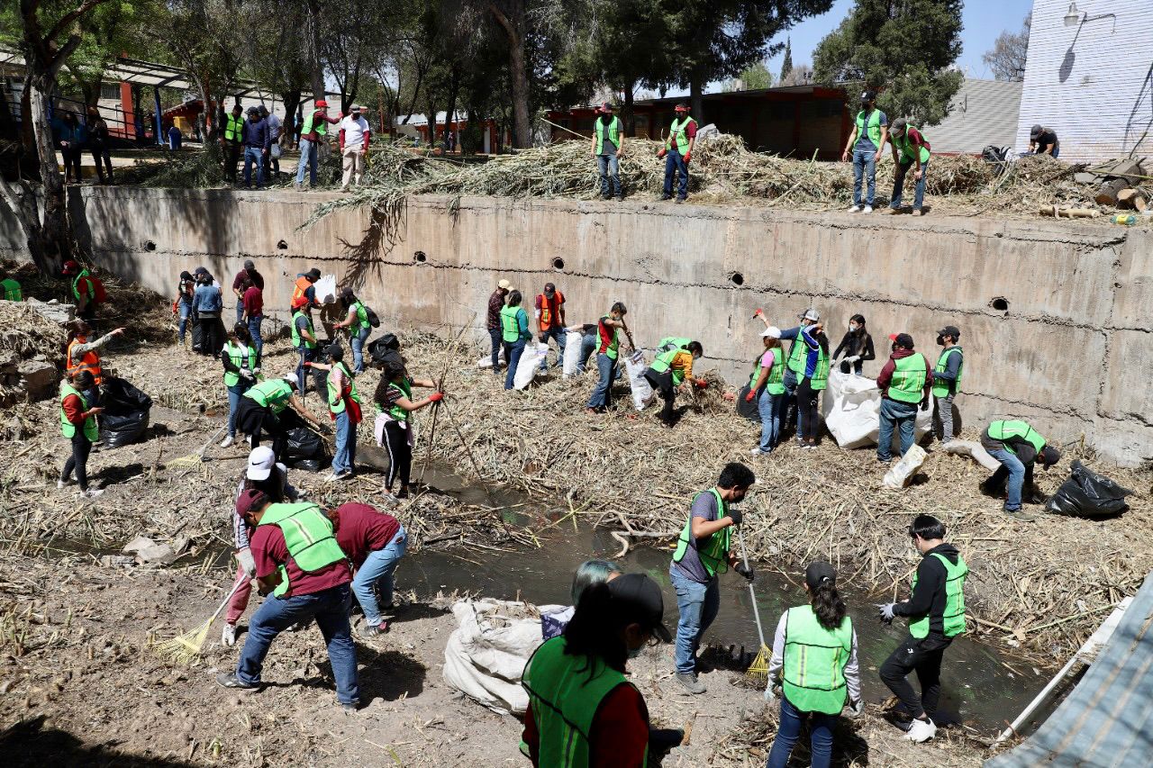 Colaboran en limpieza del arroyo Los Ojitos, que pasa por la institución