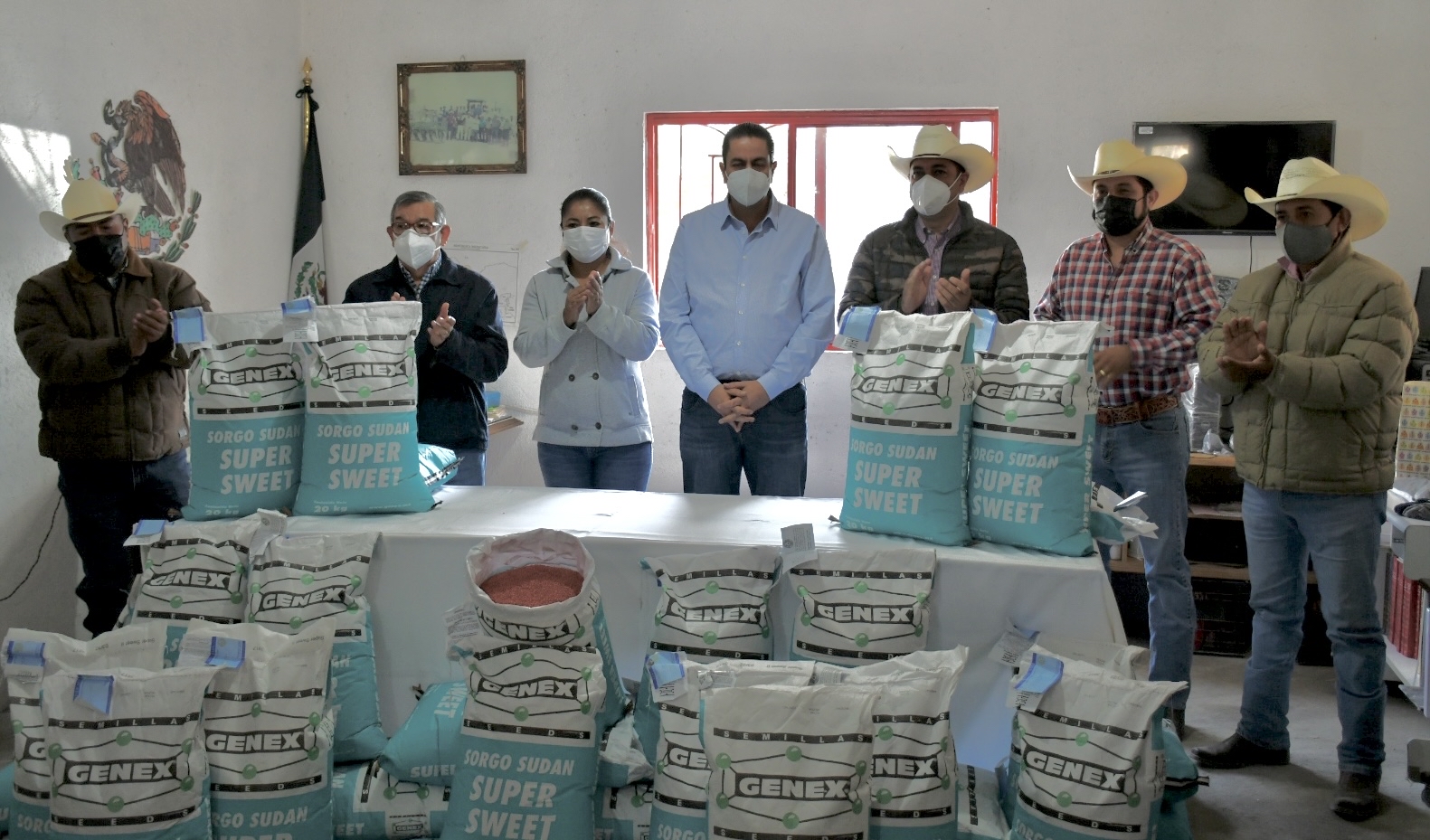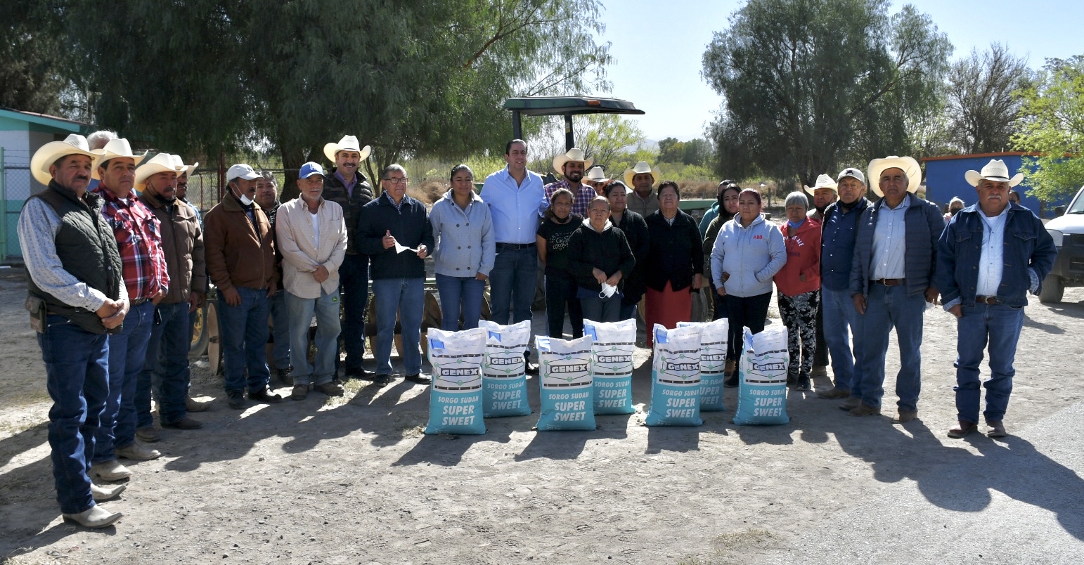 En el ejido Mesón del Norte, el alcalde de Ramos Arizpe, Chema Morales Padilla, supervisó la entrega de semilla certificada de sorgo forrajero a productores agrícolas, para la temporada primavera-verano 2022, logrando beneficiar a más de 300 ramosarizpenses que habitan en la zona rural.