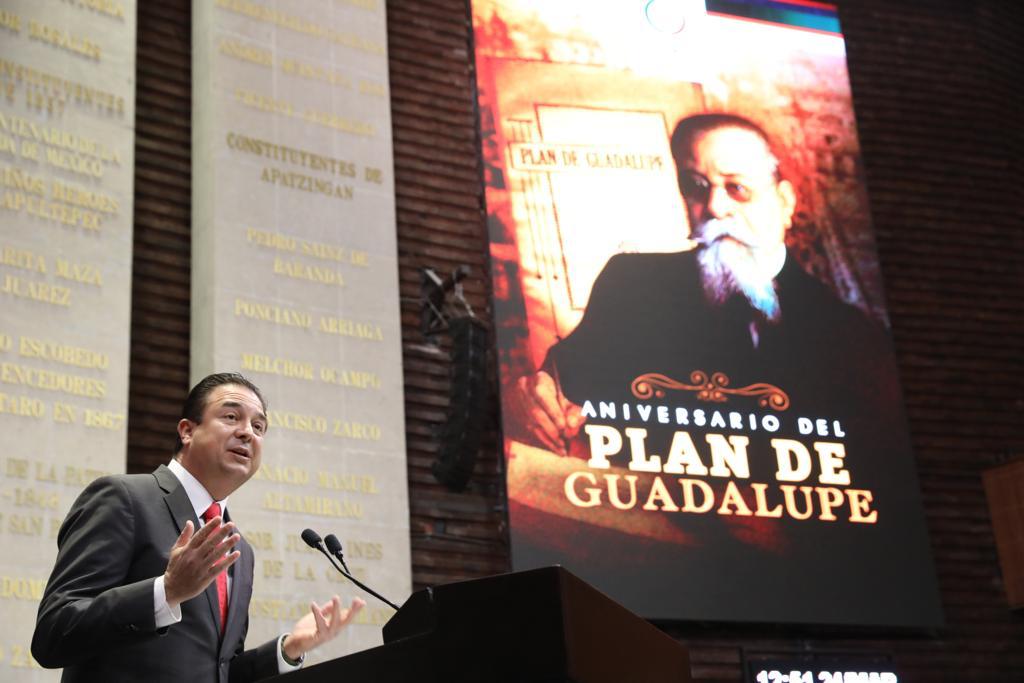 “Hoy nuestro país ha asimilado los principios de pluralidad y democracia que promulgó Carranza; a más de cien años hemos desarrollado pesos y contrapesos para evitar que nuestro sistema caiga en periodos de inestabilidad y crisis entre poderes”. Sostuvo que el Plan de Guadalupe se mantendrá vigente en tanto exista el compromiso de todas y todos de tener un país fuerte a través de las leyes que le dan sentido. (EL HERALDO)