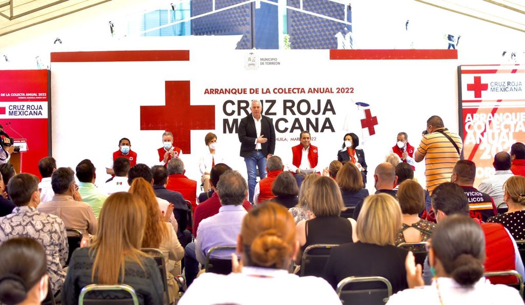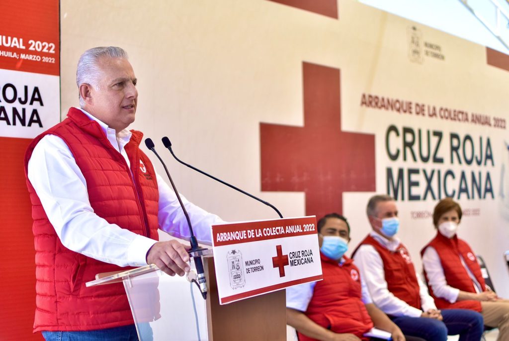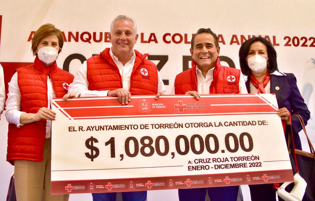 Torreón, Coahuila.- El alcalde de Torreón, Román Alberto Cepeda, puso en marcha la Colecta Anual de la Cruz Roja, junto a Jorge Abularach Lugo, Presidente del Consejo de Administración de la Institución, en el acto también estuvo acompañado por su esposa, la señora Selina Bremer de Cepeda, Presidenta Honoraria del DIF Torreón.