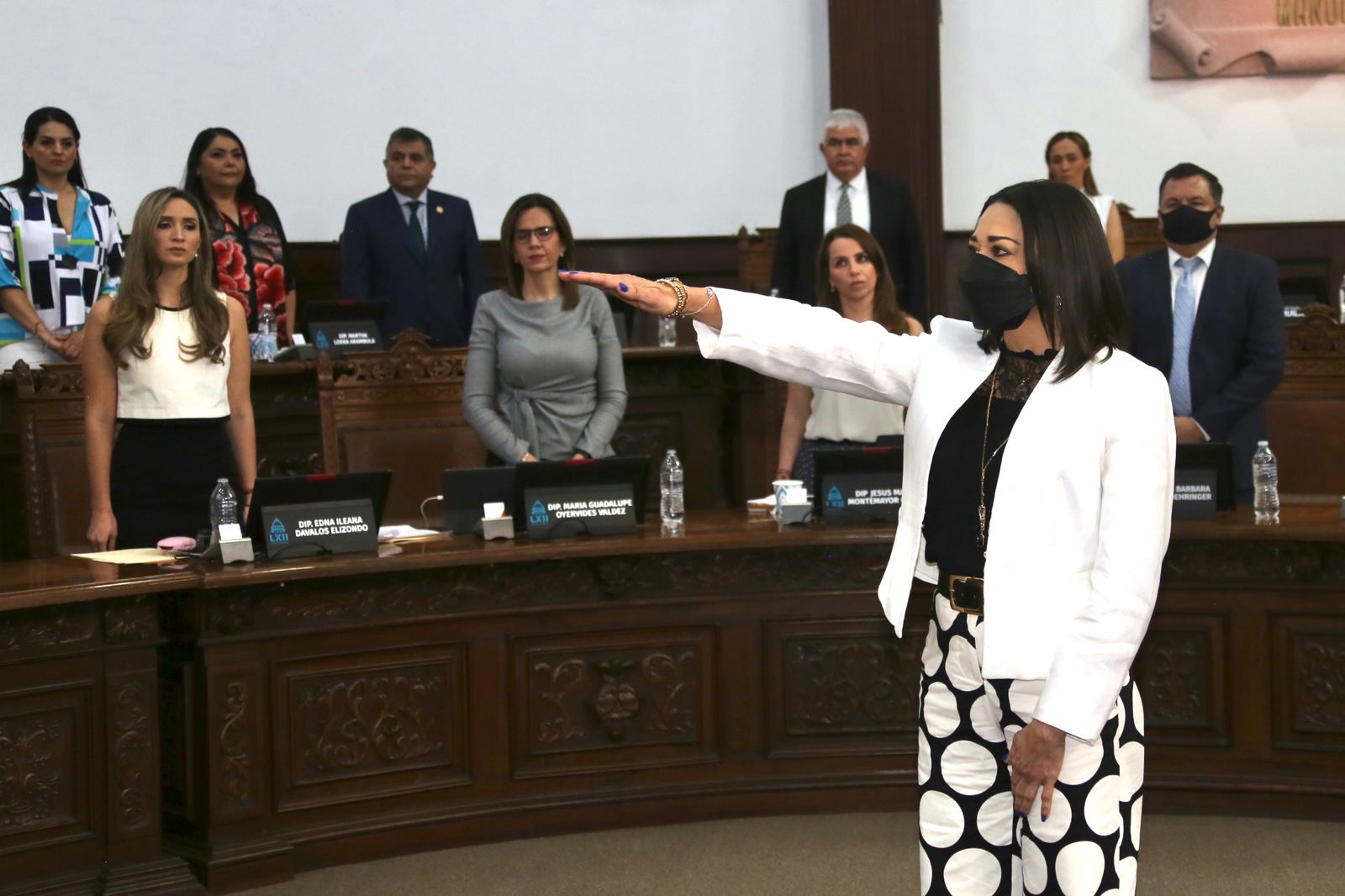 Concluida la votación, el Presidente de la Mesa Directiva del Congreso, Diputado Francisco Javier Cortez Gómez, procedió a tomar la protesta de ley a la C. María Teresa Nares Cisneros, como Contralora Interna del Instituto Electoral de Coahuila, quien durará seis años en su encargo.