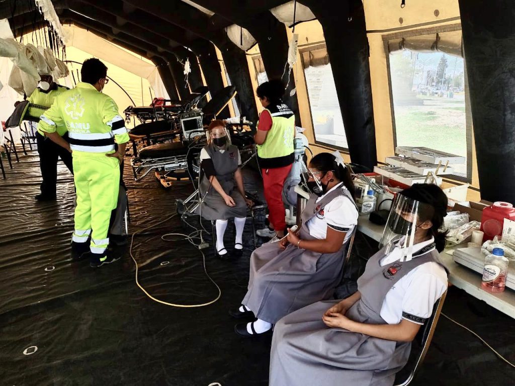 Como parte de las acciones para fortalecer el Sistema de Atención Médica de Urgencias (SAMU), la Secretaría de Salud del Estado puso en marcha por primera vez el Centro Médico Móvil Avanzado, para apoyar la vacunación transfronteriza de menores.