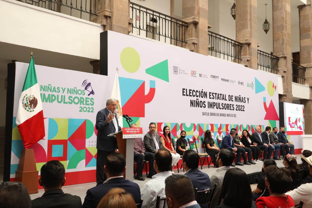 Lo anterior en el marco de la Elección Estatal de Niñas y Niños Impulsores 2022, en el que estudiantes de quinto grado de primaria de los 38 municipios participaron al elegir a su representante estatal gracias a un convenio entre la Procuraduría para Niños, Niñas y la Familia (PRONNIF), del Gobierno estatal, y el Instituto Electoral de Coahuila (IEC).