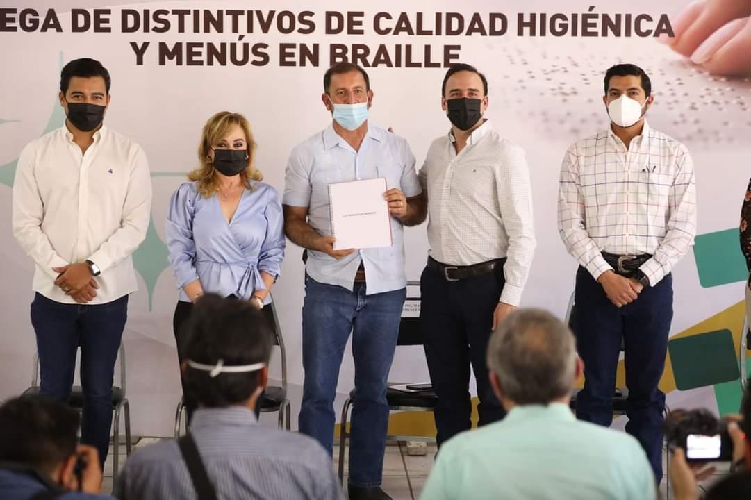 “Con estos ejemplares de menús en Braille, las personas con discapacidad visual que nos visiten podrán ser autosuficientes; a nombre del gobierno del Estado que encabeza en ingeniero Miguel Ángel Riquelme, hago un reconocimiento a los participantes a esta estrategia y los exhorto a que sigan dando lo mejor de sí mismos, sumando esfuerzos y avanzando en unidad hacia una total reactivación económica”, resaltó.
