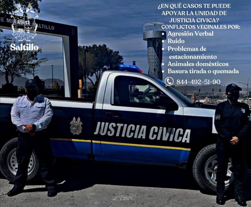En los grupos de seguridad de WhatsApp, comenzó a difundirse las funciones del agrupamiento policial Justicia Cívica que opera en Saltillo. Atenderá casos de conflictos entre vecinos por agresiones verbales, ruido, problemas de estacionamiento, animales domésticos y basura tirada o quemada. El teléfono para hacer reportes a Justicia Cívica es el 844-492-51-90 (EL HERALDO)