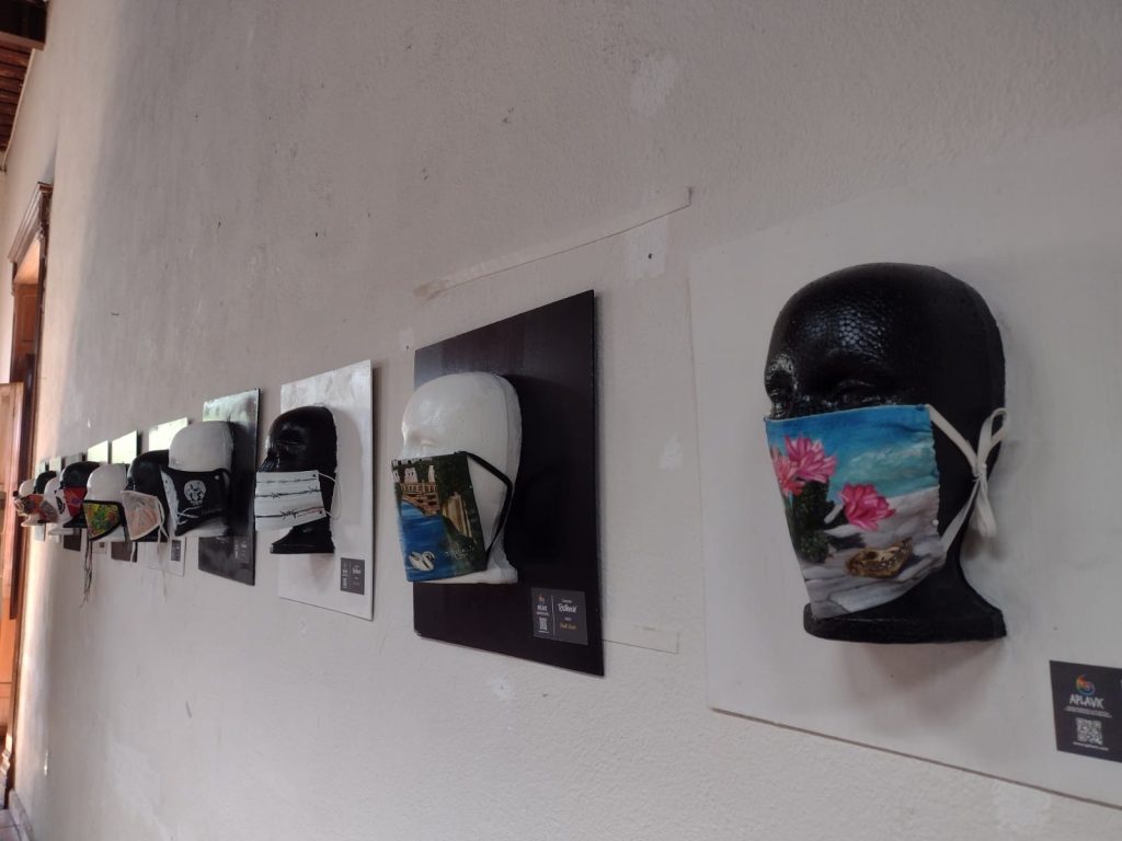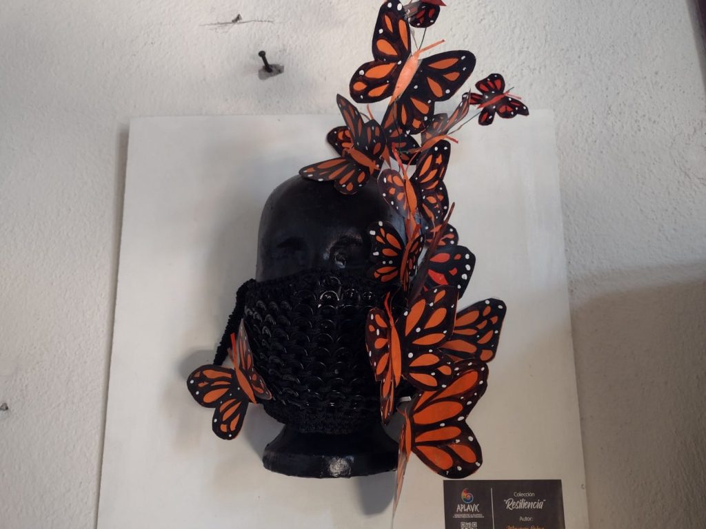 «Estamos aprovechando el espacio de la Librería para exponer una colección itinerante de arte en cubrebocas. Es una obra que inició por invitación de una galería en Italia, de México nos llevaron para allá a exponer y luego regresó la colección al país», comentó en entrevista con medios, Fernando López, presidente de APLAVIC.