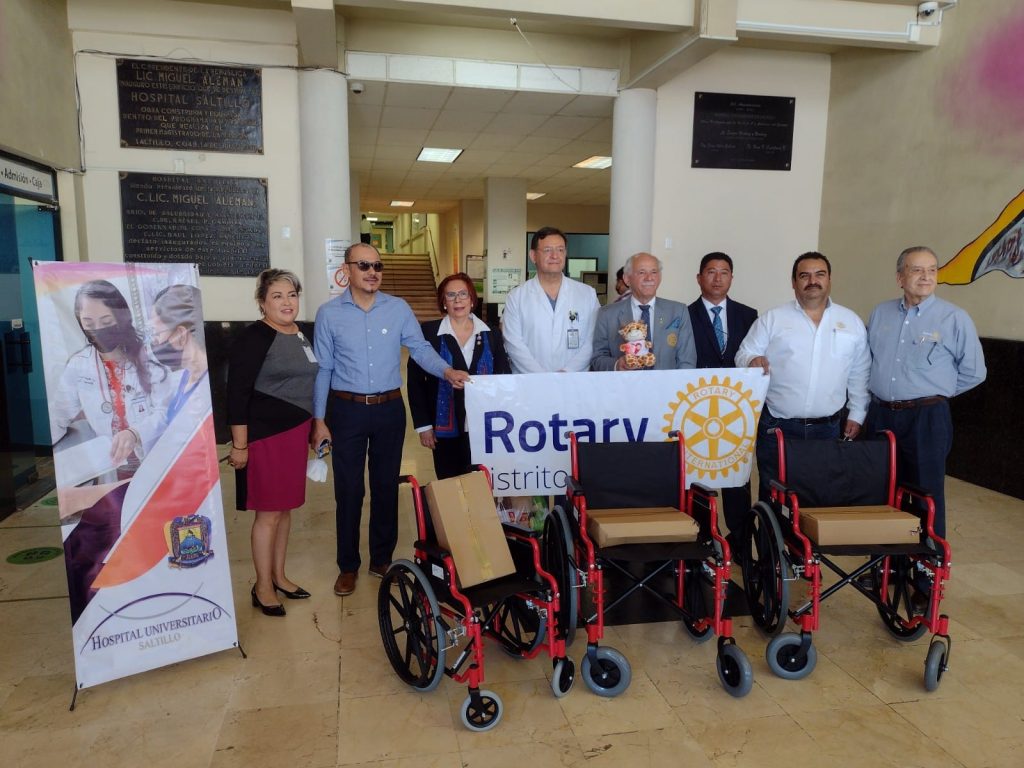 Entrega gobernador de Distrito Rotario donativo de sillas de ruedas para pacientes de Hospital Universitario